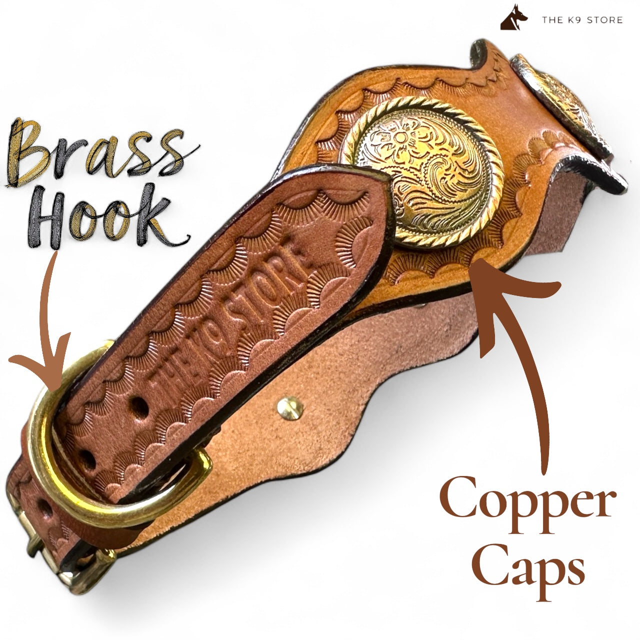 Crafted with passion and precision, the THE K9 STORE Handmade Leather Dog Collar is designed for dog owners who value strength, style, and craftsmanship. Made from premium genuine leather, this collar features hand-tooled detailing, solid copper caps, and heavy-duty brass hooks and D-rings for unmatched durability.